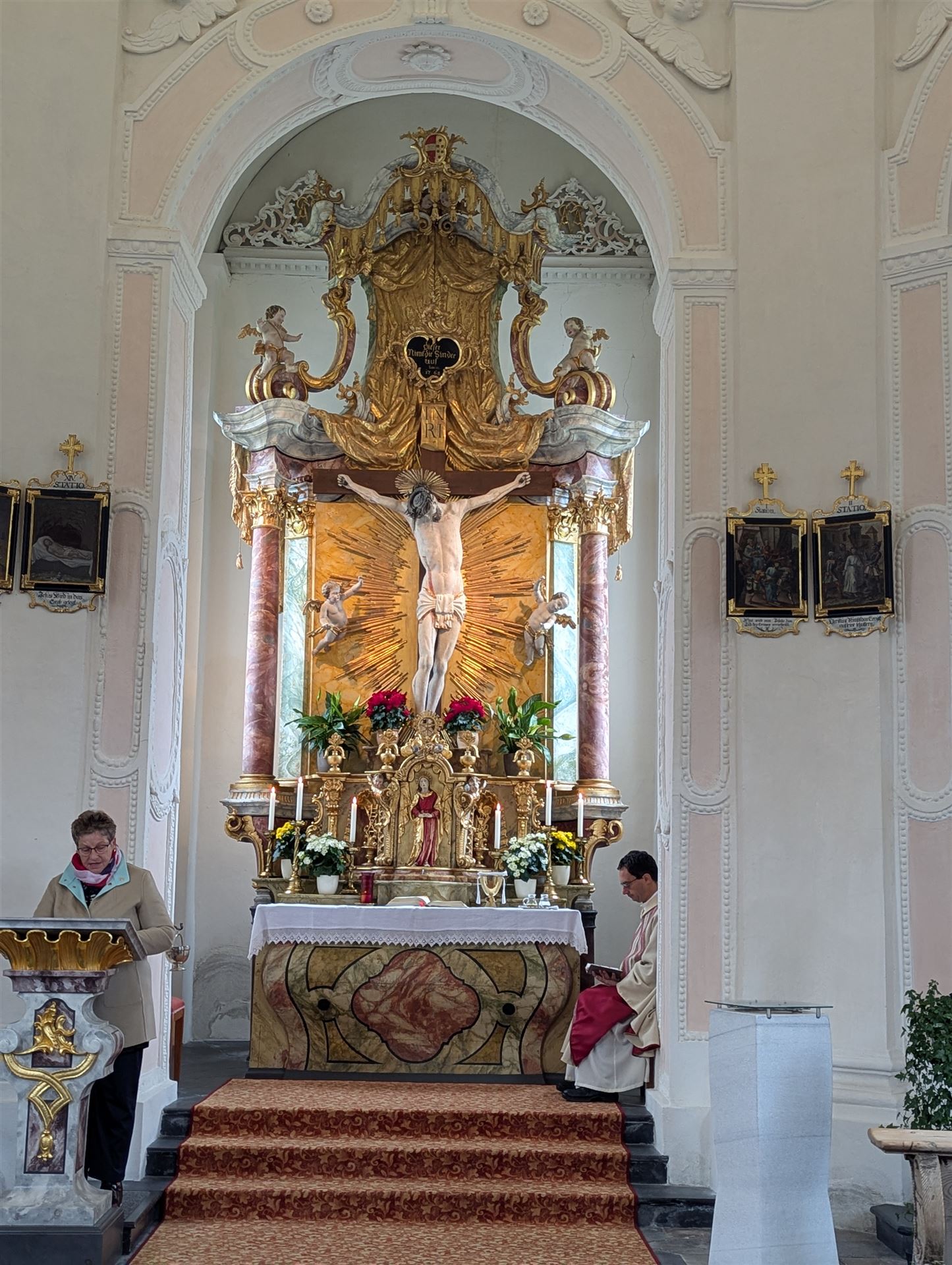 Alle drei Jahre – jeweils im Lesejahr C – wird in unserer Kirche die Hochzeit zu Kana aufgestellt. Auch heuer war es wieder soweit: Am Sonntag, 19. Jan. wurde das Evangelium des Weinwunders verkündet, die Szenerie anschaulich dargestellt am linken Seitenaltar.