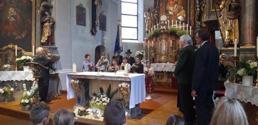 In großer Dankbarkeit feierte Pfarrer i. R. Hans Kurz am 2. Juli 2023 in der Pfarrkirche Auffach sein 40jähriges Priesterjubiläum. Die Pfarrgemeinde und Gäste aus Nah und Fern rückten zu diesem Fest natürlich gerne aus und die Auffacher Vereine (BMK Auffach, FF Auffach, LJ Auffach und Bergrettung Auffach) machten diesen Tag zu einem richtigen Festtag. Schüler der Volksschule Auffach gratulierten mit einem originellem Gedicht aus der Feder von VS-Direktorin Waltraud Stangl und PGR-Obfrau Traudi Weißbacher dankte ganz herzlich in Namen des ganzen Pfarrverbandes für die treue auf aufopfernde Mitarbeit von Pfarrer Hans.